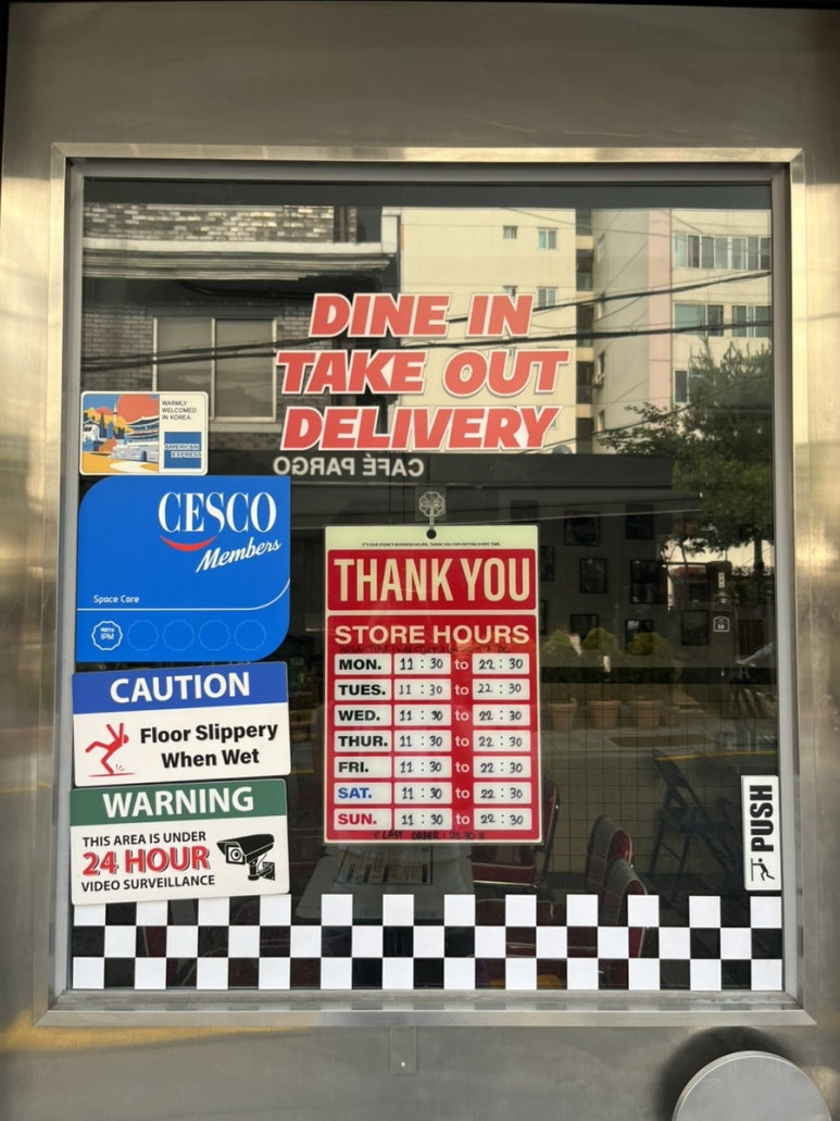 - 편의: 포장, 배달, 반려동물 동반 가능, 무선 인터넷, 간편결제 가능
