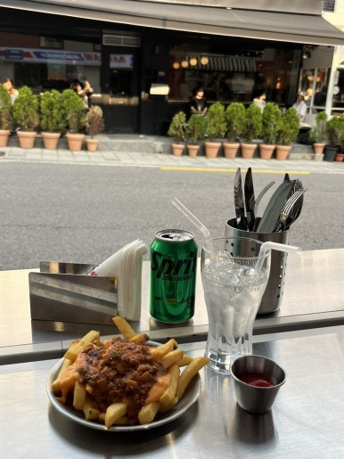 - 감자튀김 위에 진한 치즈와 칠리가 듬뿍 올라가 있어요. 매콤하고 고소한 맛이 햄버거와 찰떡궁합이더라고요!아 그리고 맛이 약간 맛있는 타코를 먹는 것 같으면서도 마라 양꼬치를 먹는 기분이랄까요? 너무 맛있어서 중독 되었습니다.